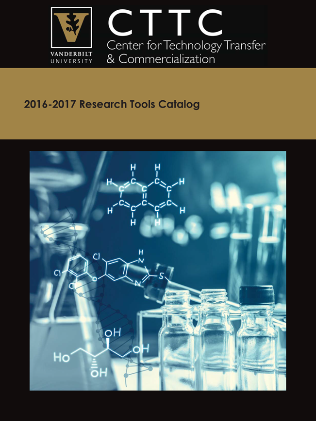 The Research Tools Catalog is a listing of research tools developed at Vanderbilt and currently available for licensing. The catalog includes animal models, peptides and proteins, antibodies, cell lines, buffers and solutions, plasmids, and more.